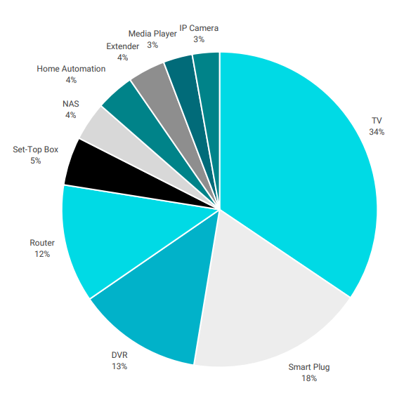 La seguridad tradicional basada en sensores pasivos y alarmas manuales ya no es suficiente. Según un estudio de ADT España, el 66% de los consumidores prevé que las alarmas con IA serán estándar en los próximos dos años. Las vulnerabilidades más comunes afectan a routers, cámaras y enchufes inteligentes. Como señala el informe citado anteriormente, en 2023 las smart TV concentraron el 34% de las vulnerabilidades detectadas en dispositivos IoT, seguidos por enchufes (18%) y grabadores digitales (13%). Muchos de estos equipos no reciben actualizaciones periódicas, lo que los convierte en puertas abiertas para los ciberdelincuentes.